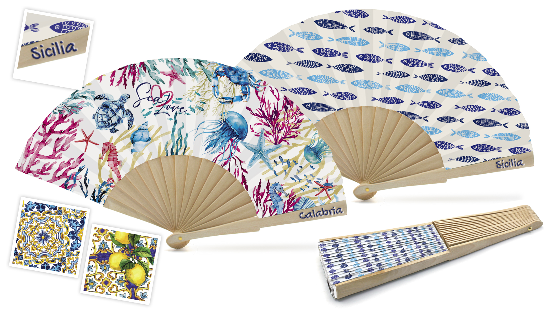 Ventaglio in sughero, stampa a rilievo sul manico personalizzabile.